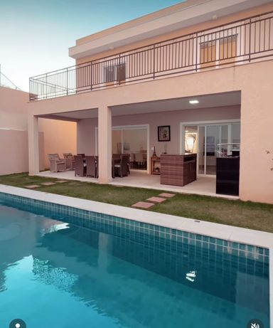 Linda casa com extensa área gourmet, vista livre. Ampla sala 3 Suítes sendo 1 Master Lavabo Escritório Bar Piscina Ar condicionado